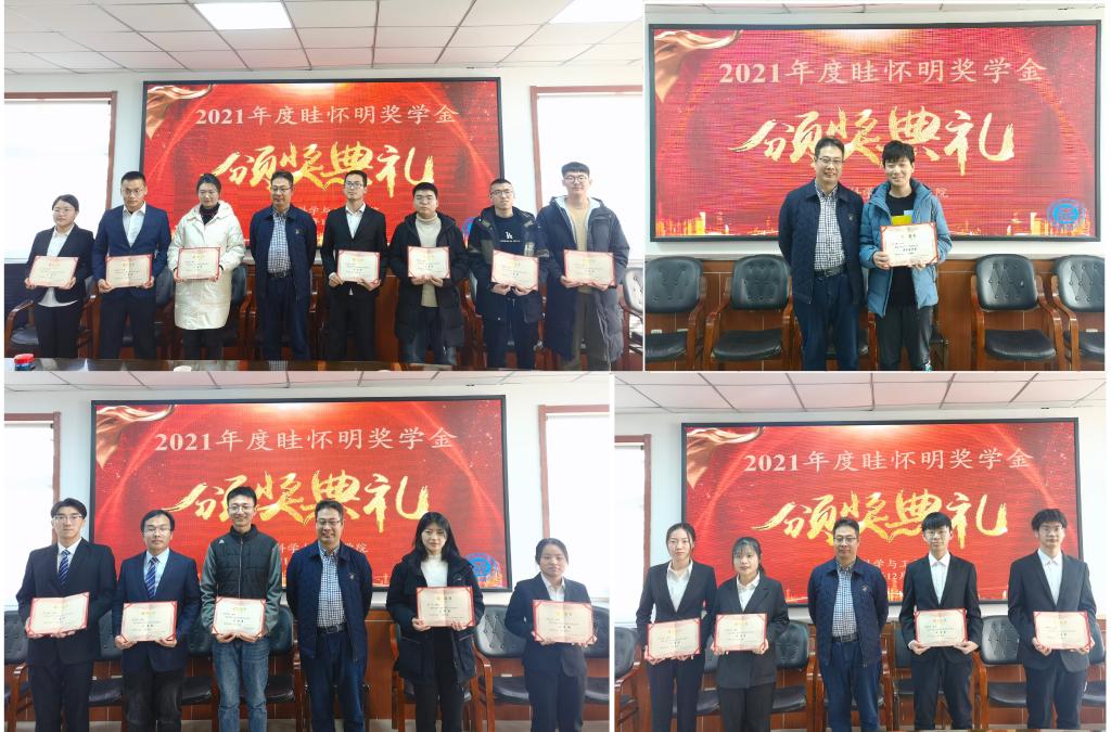 于第一会议室举行2021年度眭怀明奖学金颁奖仪式。出席本次颁奖仪式的嘉宾和领导有:扬州峰明光电新材料有限公司董事长眭怀明、院领导、辅导员老师及获奖学生。