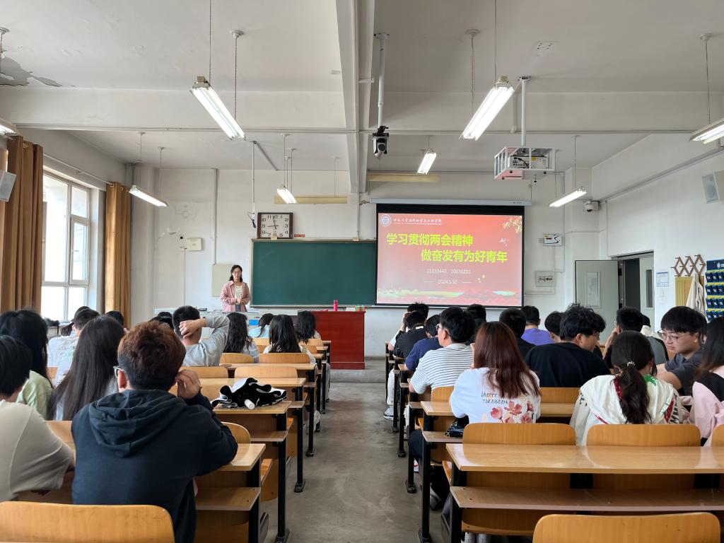 本次主题班会意义重大,一方面充分发挥人生导师育人作用,形成浓厚的全员育人氛围;另一方面引导学生聆听两会声音,明确作为新一代青年人肩负的历史使命和时代责任。希望同学们能在实践中不断深化对两会精神的理解,将其内化于心,外化于行,以实际行动为国家的发展和民族繁荣贡献自己的智慧和力量。