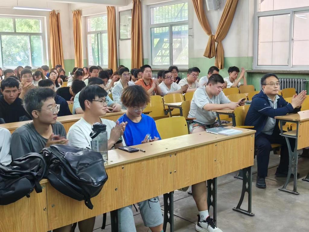 的发展史,让学生们对学校有了更全面的认识,极大激发了同学们的爱校热情,荣校意识,作为一名中北学子,内心萌发出深深地自豪感。蔡老师还详细阐述了两会热点新词“新质生产力”,以“新”提“质”,以科技创新驱动生产力向新的质态跃升。蔡老师结合材料专业特点,引发学生思考,如何做好大学规划,如何提升自己的科技创新能力,丰盈自己的大学生活。