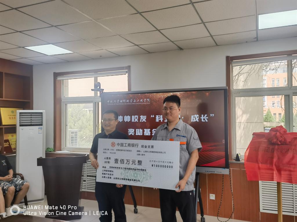 会议室举办。出席捐赠仪式的嘉宾有山西校友会会长杨波、山西校友会副会长兼秘书长曹永勤、山西校友会副会长兼晋城分会会长闫玉喜、山西校友会副秘书长兼晋城分会秘书长朱宁涛、山西校友会副秘书长高雨荷、山西校友会晋城分会副秘书长郭佳斌、山西科立特精密铸造科技有限公司总经理王翔轲、山西科立特精密铸造科技有限公司副总经理。学校副校长尹建平、红杏视频