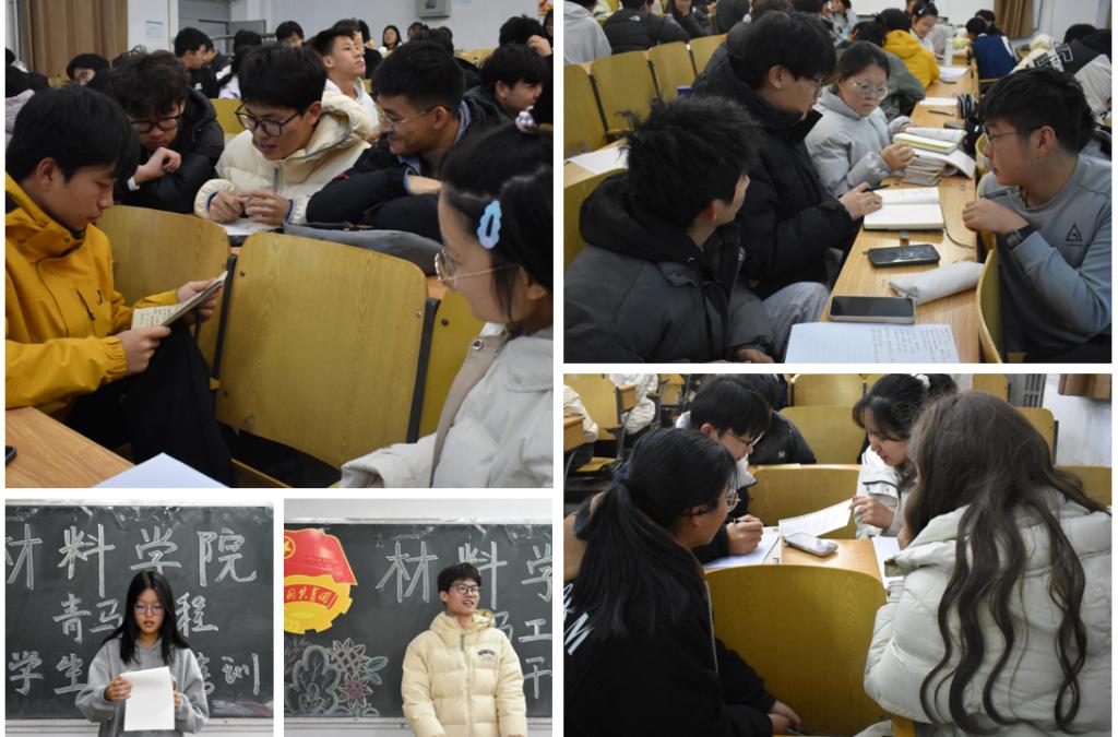 授课结束,青马班全体学员以班级为单位针对此次培训展开了激烈的讨论,各班学员代表进行总结发言。大家纷纷表示,此次培训受益匪浅,学生干部必须以身作则,以自己为点,形成思想与实践的辐射圈,从思想、学习、实践等多个方面带动同学们一起成长进步,为中华民族的伟大复兴贡献自己的青春力量。