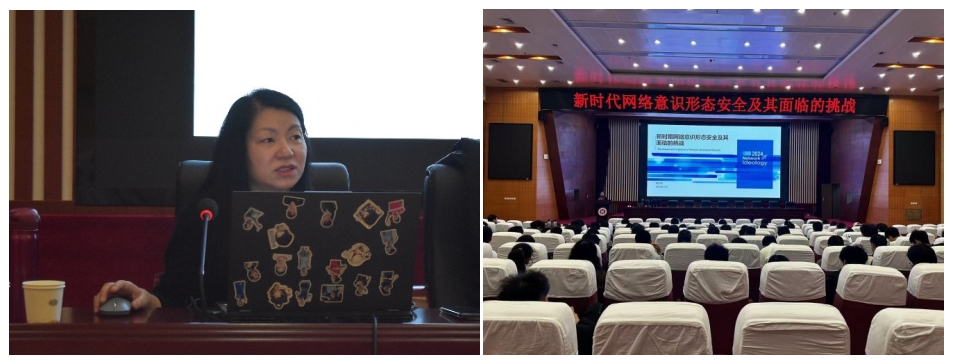 袁文丽教授以《新时期网络意识形态安全及其面临的挑战》为题展开精彩讲解。从网络意识形态及其内涵着手,深入阐释其核心要点;接着详细剖析网络意识形态安全的内容;针对当前网络意识形态安全面临的挑战,袁教授结合当下热点时事,多视角地深入分析了网络意识形态的特点与影响,将相关问题清晰透彻地加以剖析;最后,还系统阐述了维护网络意识形态安全的相关策略。袁教授以其渊博的知识和生动的讲解,为师生们呈上了一场高水准的学术盛宴。