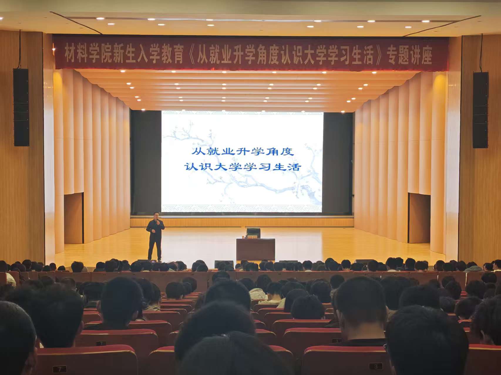 在科艺苑隆重开展2025级本科生入学教育专题讲座。学院党委副书记辛振东以“从就业升学角度认识大学学习生活”为主题,为全体2025级本科新生带来了一场兼具指导性与实用性的精彩分享。2025级本科新生班主任、班主任助理及全体新生共同参会,现场氛围热烈。