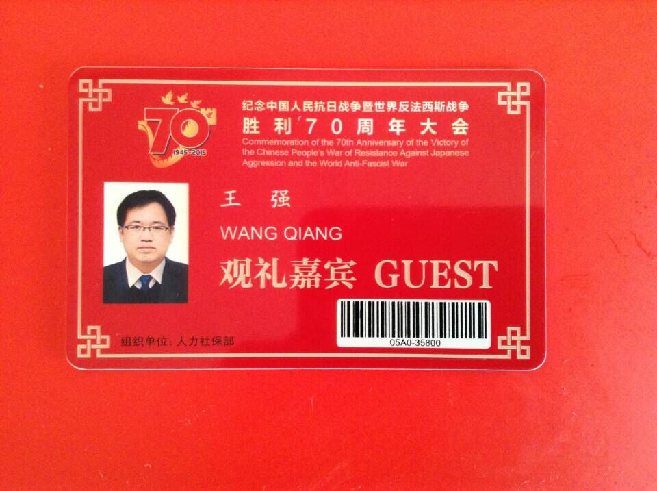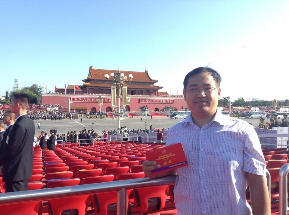 教师王强教授作为山西教师代表之一到北京天安门参加了“纪念中国人民抗日战争胜利暨世界反法西斯战争胜利70周年大会”阅兵观礼。作为2014年全国模范教师,王强教授在观礼台一区,正面天安门,旗杆西侧,比邻仪仗队和合唱团,亲历了祖国这一伟大、神圣的历史时刻,深切感受到祖国的强盛和作为中国人的尊严和自豪!