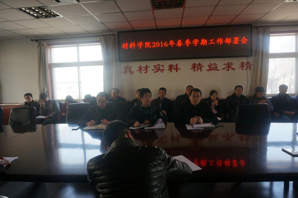 召开2015-2016学年春季学期工作部署会。会议由党委书记侯华教授主持,学院全体教职工参加了会议。