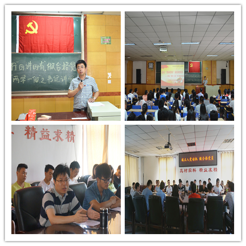 为庆祝建党95周年,喜迎“七一”践行“两学一做”,6月29日下午4:00,我院党委书记侯华在09102H教室给全院师生党员做“践行‘四讲四有’做合格党员”党课。侯书记围绕什么是“四讲四有”、怎样做到“四讲四有”及习近平总书记论如何做合格党员三个方面来讲解。6月30日上午10:30,党委副书记廖海洪在院办会议室给材料成型及控制工程专业学生党支部党员讲主题为“端正入党动机,做合格党员”党课。廖副书记结合红杏视频