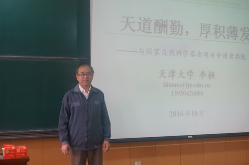 邀请天津大学教授、博士生导师、李桓老师在11408教室作题为《天道酬勤厚积薄发—与国家自然科学基金项目申请者共勉》的学术讲座。