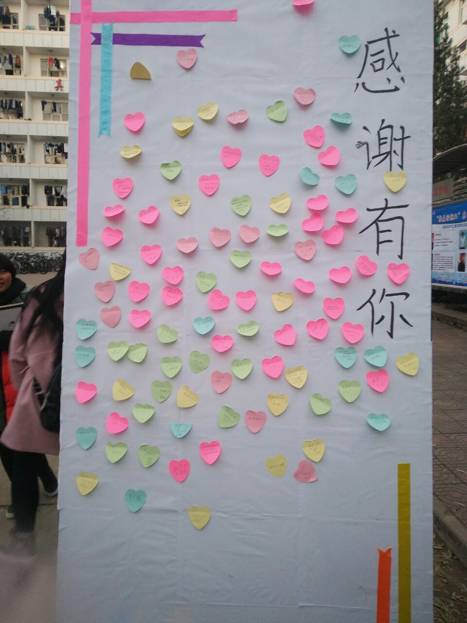 在感恩墙上,在心形的便利贴上,我们看到的是各种各样的祝福,各种各样的心愿,用心写下的每一句祝愿都是内心真挚情感的表达,每一笔每一划都书写着自己对曾经帮助过自己的人的谢意,一颗简单的心,留下的是一段动人的情。