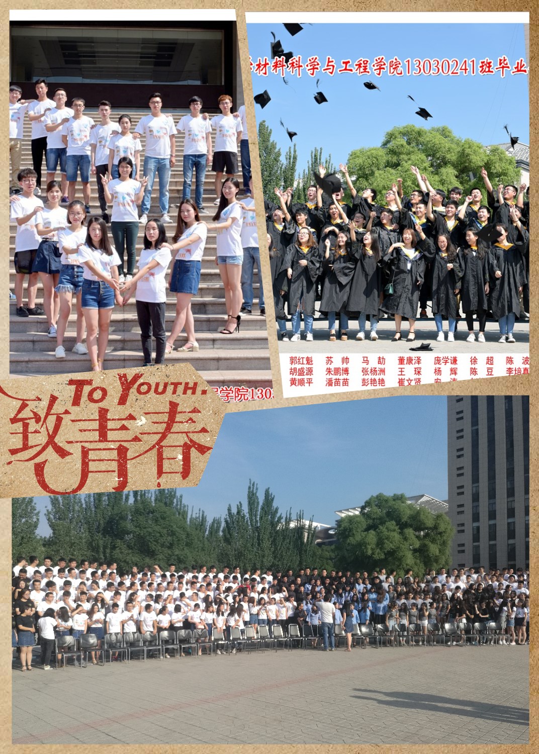 6月15日早晨,迎着初升的太阳,刚刚结束毕业答辩的2013级全体材料学子,满怀喜悦与兴奋在行知广场前集合拍摄毕业照,这是对他们四年奋斗青春的最好记录。