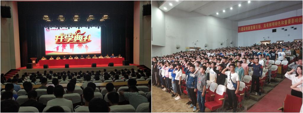 全体新生齐聚科艺苑,隆重举行2018级新生开学典礼暨新生安全教育大会。与会的领导和老师有院党委书记薛亚奎、院长侯华、教学副院长李迎春、各学科部主任和副主任、学院各部门主要负责人及教师代表王文生。院党委副书记郭云霞主持典礼。