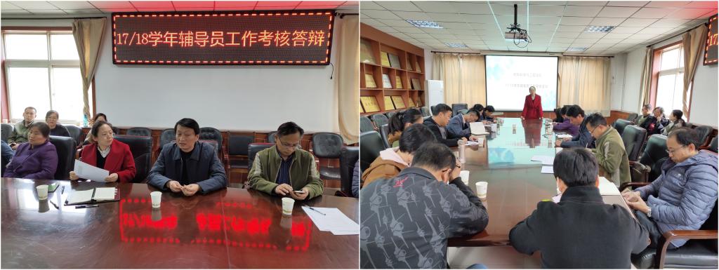 于2018年11月5日下午开展17/18学年辅导员工作考核答辩。学生处副处长杨湖、院党委书记薛亚奎及其他院领导、学科管理部主任与副主任们、班主任代表等十四名老师出席了本次答辩并担任评委,本次答辩会由郭云霞老师主持。