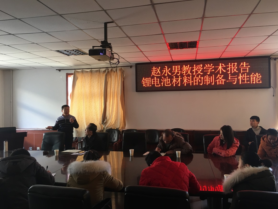 报告会上,赵永男教授以锂电池的发展史以及存在的关键问题入手,分为四个部分进行了报告。介绍了多种锂电正极材料发展现状,并结合自己的研究成果,重点介绍了多孔芳香骨架材料的制备、锂硫电池等相关内容。最后对所带科研团队和研究成果进行了介绍。学术报告结束后,赵永男教授与现场的师生进行了互动交流,针对同学和老师们提出的问题进行了详细解答。赵永男教授的报告循序渐进,使在场师生受益匪浅,得到了一致好评。