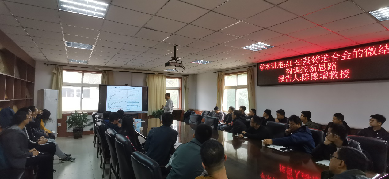 赵宇宏教授的邀请,西北工业大学陈豫増教授来我校进行学术研讨和交流,并作了题为 “Al-Si基铸造合金的微结构调控新思路” 的学术报告。