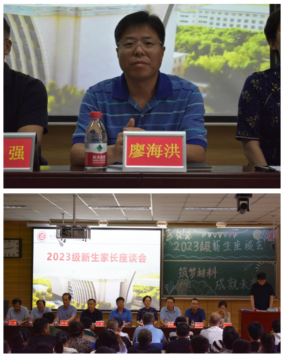 云天收夏色,木叶动秋声。新的学期在同学和家长们的殷切期盼下,欣然而至。为进一步增进新生家长对学院办学特色、专业发展、人才培养和学生管理等方面的了解,红杏视频 于2023年9月14日下午在09202H召开2023级新生家长座谈会。院党委书记廖海洪、院长王强、院党委副书记郭云霞、科研副院长刘斌、材料成型及控制工程专业负责人李志勇、无机非金属材料专业负责人渠永平、高分子材料与工程专业负责人付一政、复合材料与工程专业负责人张彦飞、院教学科科长金属材料专业教师王志云出席会议,2023级各班班主任及300余名新生家长参加会议。座谈会由院团委书记郝诗韵主持。