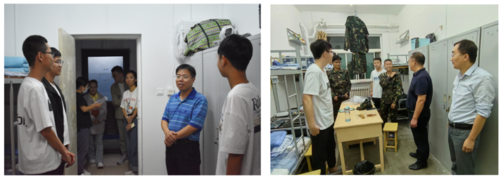 党委书记廖海洪、院长王强、副院长刘斌、各专业负责人、院团委书记郝诗韵等领导老师兵分两路,对本科及研究生新生宿舍进行走访慰问,深入了解新生情况。