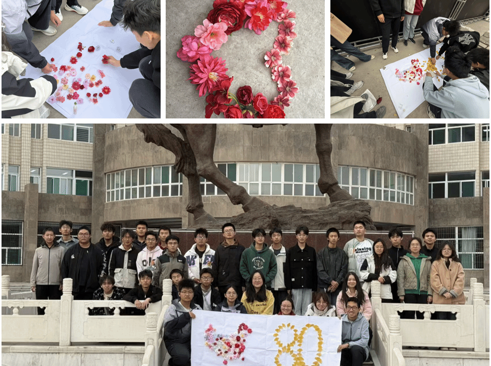 11月12日,活动在校园彭德怀雕塑前温情启幕。支部创作组绘制的巨型抗战地标地图缓缓展开,同学们手持白色菊花、红色玫瑰等象征缅怀与热血的彩花,依次走向南京、重庆、台儿庄、延安等抗战重要地点。大家在对应坐标轻置花朵,深情讲述当地抗战故事,南京大屠杀中平民的不屈抗争、重庆大轰炸下国人的坚韧坚守、台儿庄大捷里将士的浴血英勇,以及延安革命圣地照亮前路的信仰灯火,让书本上的历史坐标变得可触可感。