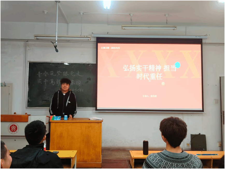 11月10日17:30,在纪检委员陈昊博的领学带领下,支部成员齐聚10209Z教室开启实干精神的专题学习。活动通过播放实干典型事迹视频、开展互动问答等形式,系统解读“看准了就抓紧干”的实干内涵,让支部成员深刻理解实干是把愿景蓝图转变为发展实绩的核心路径,进一步筑牢了“干字当头、笃行不怠”的思想根基。