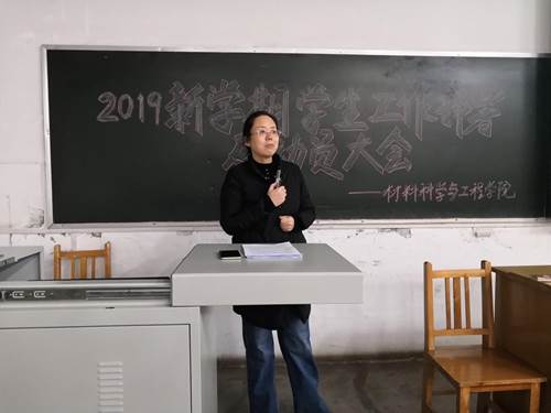 工作中的不足,交流了新一年的工作打算及重点工作如安全稳定、学风建设、专业认证等,并提出了2019年全院学生工作的奋斗目标,为各班、各级学生组织指明了方向。最后郭老师提出三点希望,摆正角色定位、在其位谋其职、树立家国情怀倡导奉献友爱包容,同时也殷切希望全院同学要积极努力学习本领技能,取得优异成绩,用骄人的业绩和成果来扩大学校和学院在社会上的影响力,为学校冲击一流学校、材料学冲击一流学科贡献力量!郭老师充满激励的话语与自信的深情,鼓舞感染着在座每一位材料学子的心,点燃了他们新学期奋斗的激情。