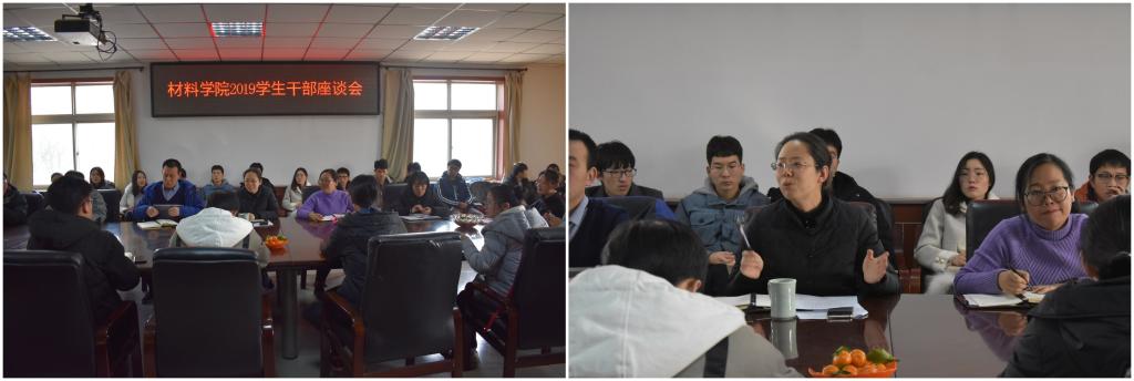 于院办会议室举办学生干部座谈会,出席此次会议的有院党委副书记郭云霞老师、院团委书记毋登辉老师、学生科科长殷炳叶老师、学生科宋春丽老师、团委学生干部和各年级学生干部。