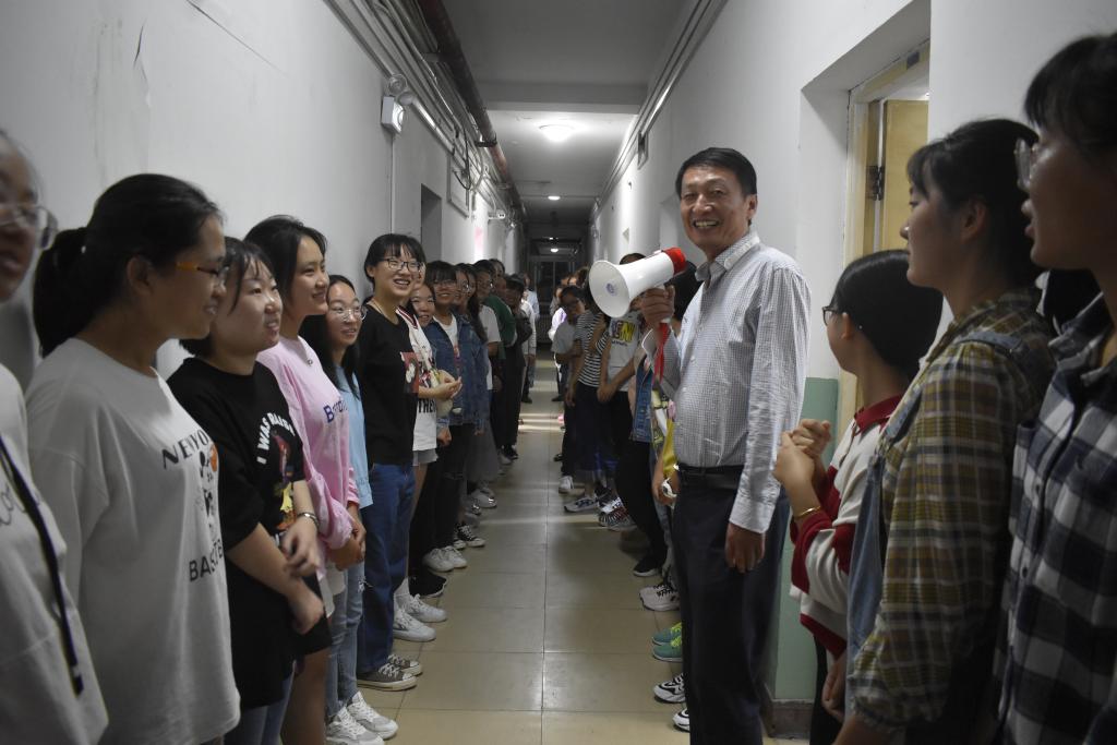 朗朗金秋,丹桂飘香,9月7日晚,19级迎新工作顺利完成。副校长潘晋孝在院党委书记薛亚奎、院长侯华的陪同下深入新生宿舍看望19级本科生并向新生表示慰问和关怀。院党委副书记郭云霞、教学副院长李迎春、科研副院长刘斌、全体辅导员及新生班主任一同来到新生宿舍。