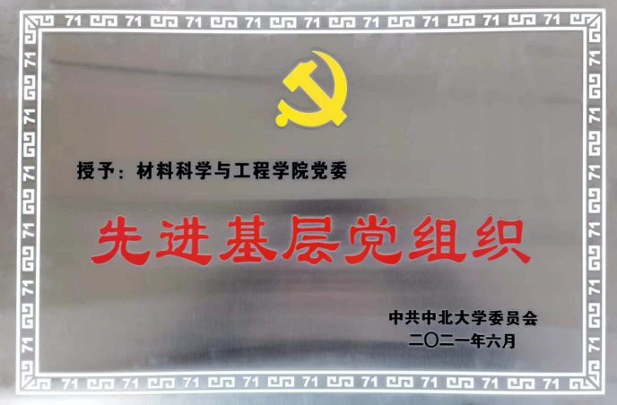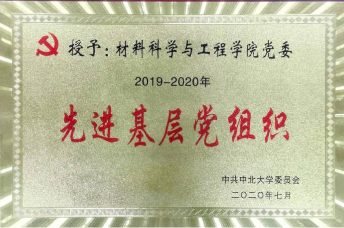 2020年度、2022年度优秀中层领导班子;2021年,研究生材料学党支部获山西省委教育工委先进基层党组织;2022年研究生材料学党支部通过第二批“全国党建工作样板党支部”和山西省首批“全省高校研究生样板支部”验收。