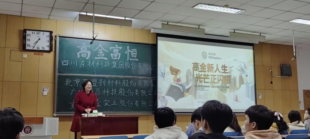 本次会议主要内容包括对四川东材科技集团有限公司、北京高盟新材料股份有限公司和广州毅昌科技股份有限公司在内的三家公司进行企业介绍和岗位需求介绍。会议开始由郭云霞书记进行开场讲话,接着由高金富恒集团的集团代表对上述三家企业进行一一介绍。