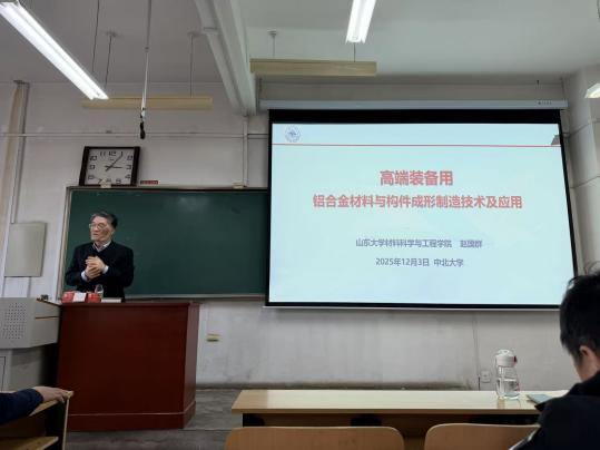 邀请山东大学赵国群教授在14203H作了题为“高端装备用铝合金材料与构件成形制造技术及应用”的专题讲座,王强院长主持,学院教师和部分学生代表参加了本次讲座。