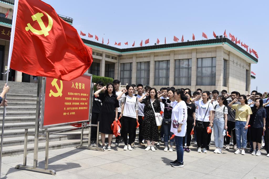 上午11时,党员们来到了八路军太行纪念馆,跟随着讲解员的引领,大家先后参观了日本全面侵华八路军出师抗日、开展敌后游击战争抗日、举行全面反攻夺取最后胜利等展览。纪念馆用最朴实的文字,最真实的雕塑和最写实的照片,把抗日时代的一场场战役,一个个人物,一段段经历,生动地展现了出来。当讲解员讲到,许多战士年少从军抗战,为国捐躯,客死异乡;许多党员夫妻为完成上级布置的抗日任务,寄养年幼的孩子;八路战士为祖国奔赴战场,不在乎功名利禄时,很多学生党员都流下了眼泪。参观结束后,在殷炳叶老师的带领下,全体党员进行了重温入党誓词仪式,“为共产主义奋斗终身”的铮铮誓言久久在上空回荡。