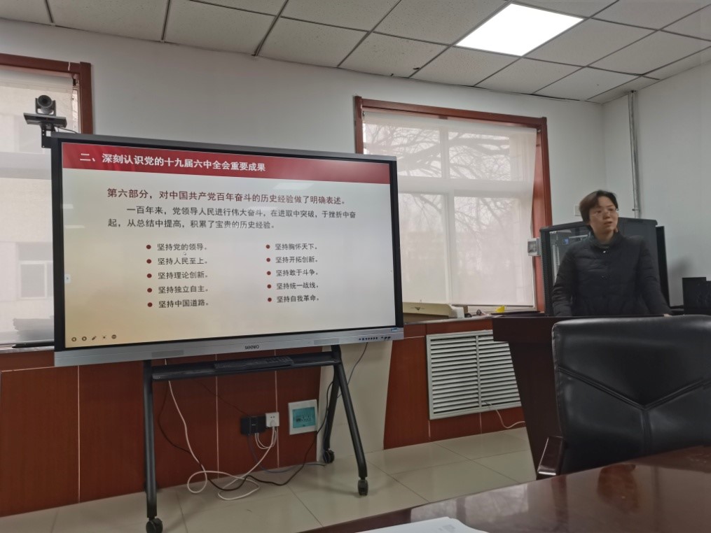 12月10日下午,材料学教工党支部全体党员教师在笃学楼二层大会议室进行了集中学习。联系该党支部的院党委委员、院党委副书记郭云霞同志就十九届六中全会重要成果和核心要义进行了宣讲解读。
