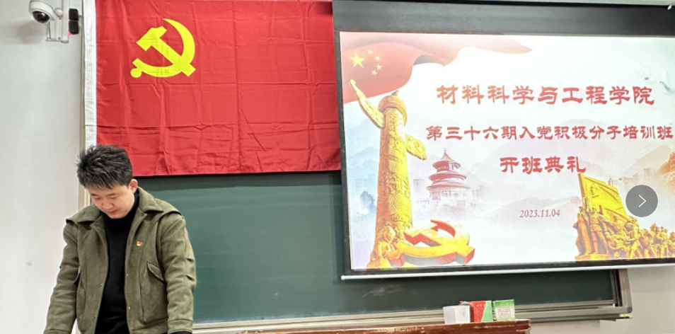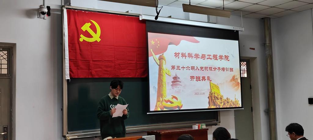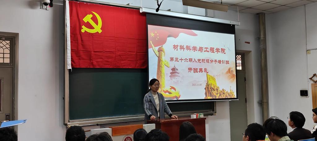 分党校学员守则》,李艳同志对此次院党课的各培训环节进行安排,复合材料与工程专业学生党支部胡禹辰同学代表全体入党积极分子发言。