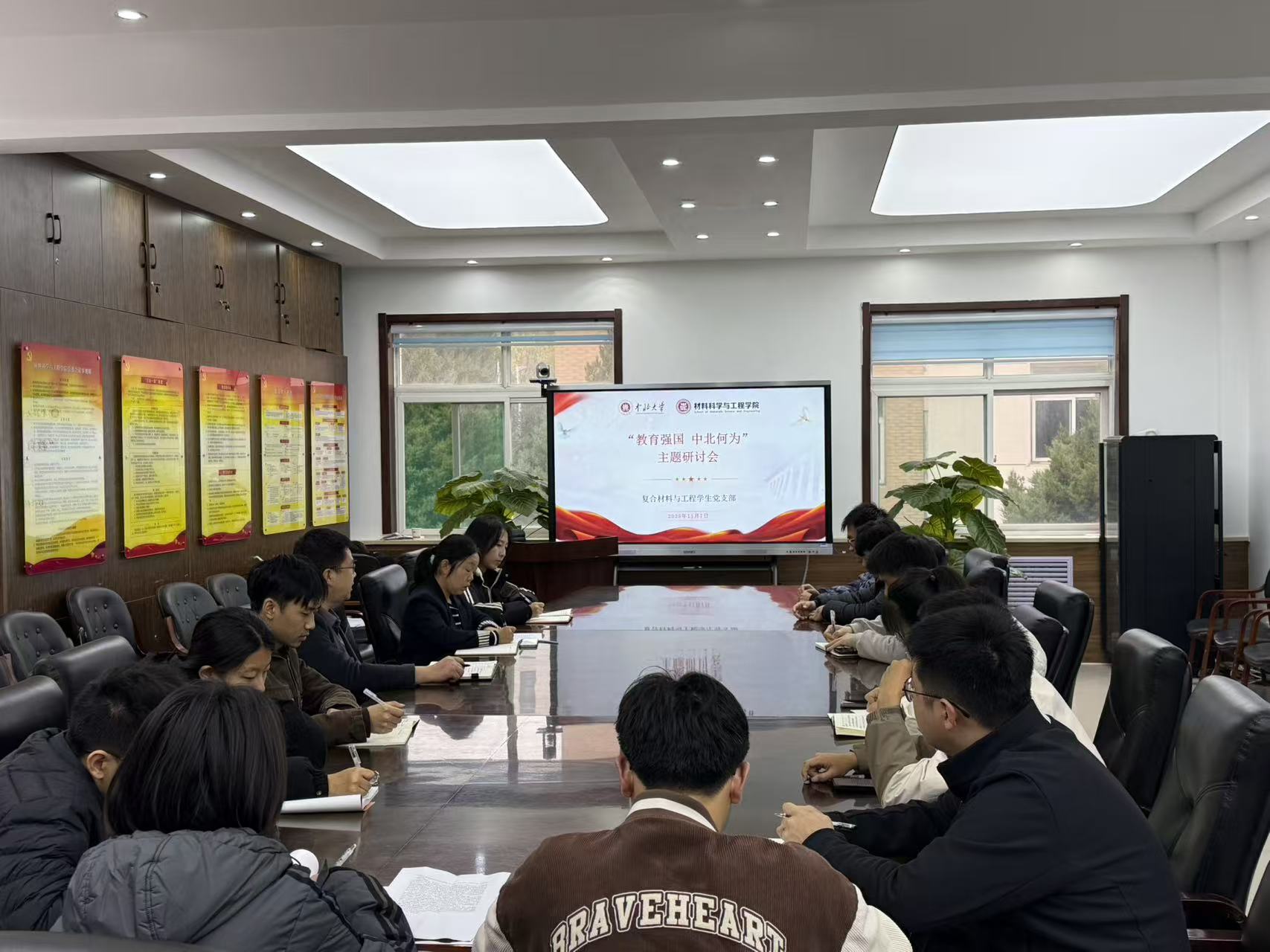 为深入学习贯彻习近平总书记关于教育的重要论述,转化集中大课学习成果,明确中北学子在教育强国建设中的使命担当,11月7日上午10:00,复合材料与工程学生党支部在院办工会之家召开“教育强国 中北何为”主题研讨会。学院党委副书记辛振东出席并讲话,会议由支部书记李静同志主持,支部全体党员参加研讨会。